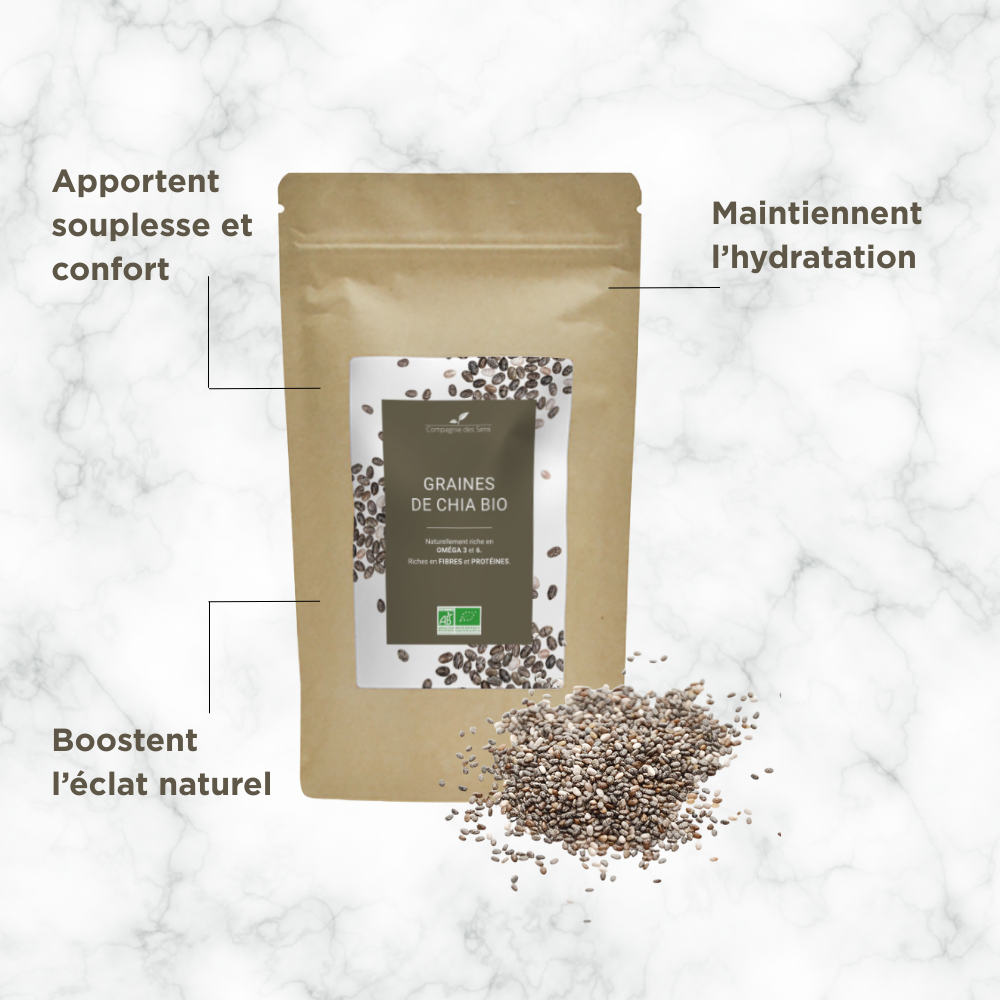 Super-aliment anti-inflammatoire et riche en minéraux, les graines de chia sont de petits concentrés de vitalité qui prennent soin autant de l'intérieur que de l'éclat extérieur.